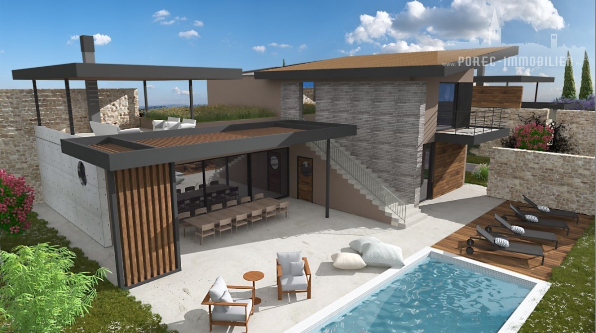 Im Februar 2023 beginnt der Bau einer modernen Villa mit beheiztem Pool und wunderschönem Meerblick.