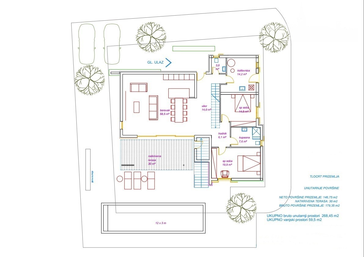 Die Villa wird aus einem Erdgeschoss und einem ersten Stock mit einer Nettofläche von 217,75 m2 bestehen.