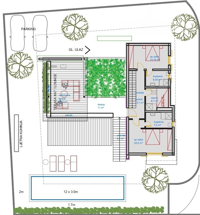 Am Eingang der Villa sind zwei Parkplätze geplant.
