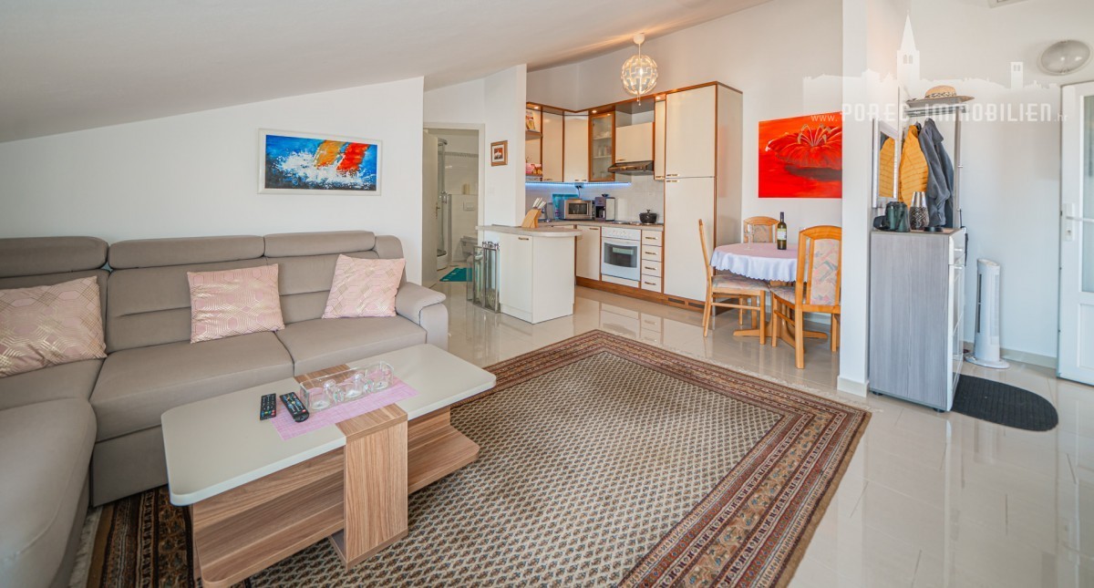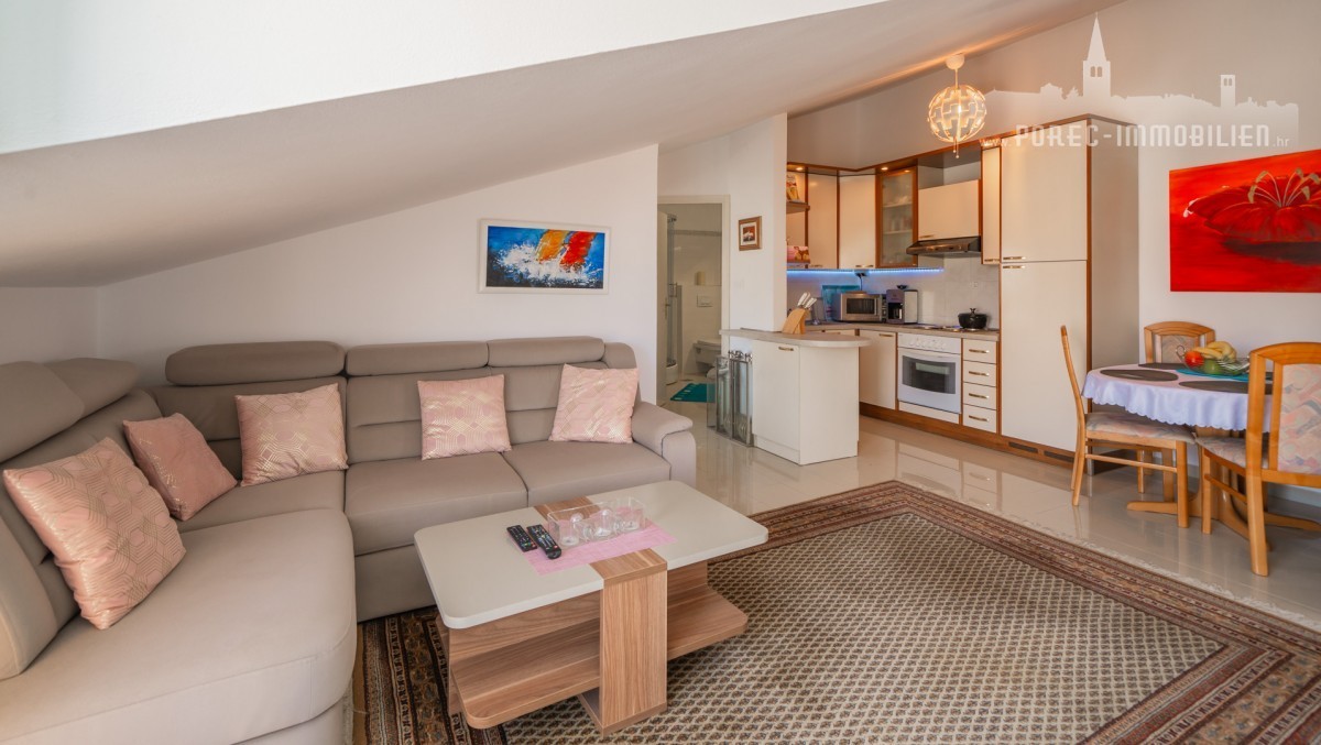 Just 500 meters from the lively heart of Poreč, this charming furnished apartment offers the perfect blend of comfort, convenience, and stunning sea views. Situated on the third floor (attic) of a well-maintained residential building, it presents an excellent opportunity as either a relaxing holiday home or a high-return investment in the local tourism.