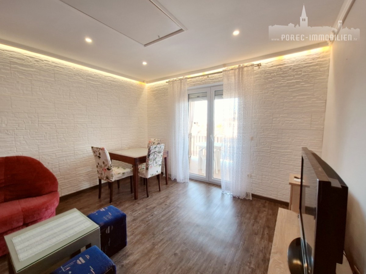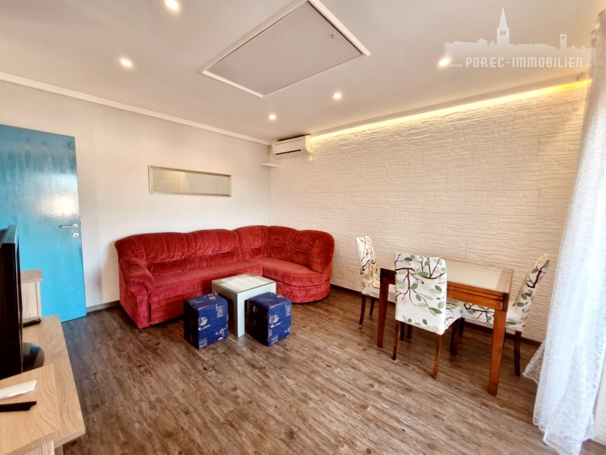 In the immediate vicinity of the town of Poreč, in the village of Stranići, we are selling an apartment with two bedrooms, a kitchen, and a living room that opens onto a large terrace with a beautiful panoramic sea view.