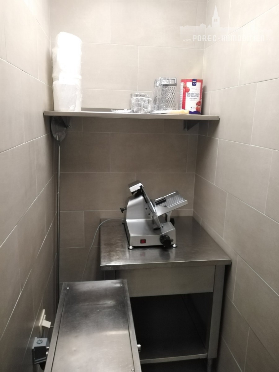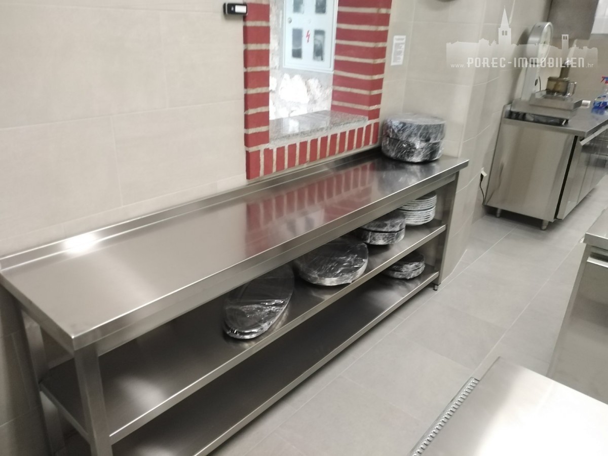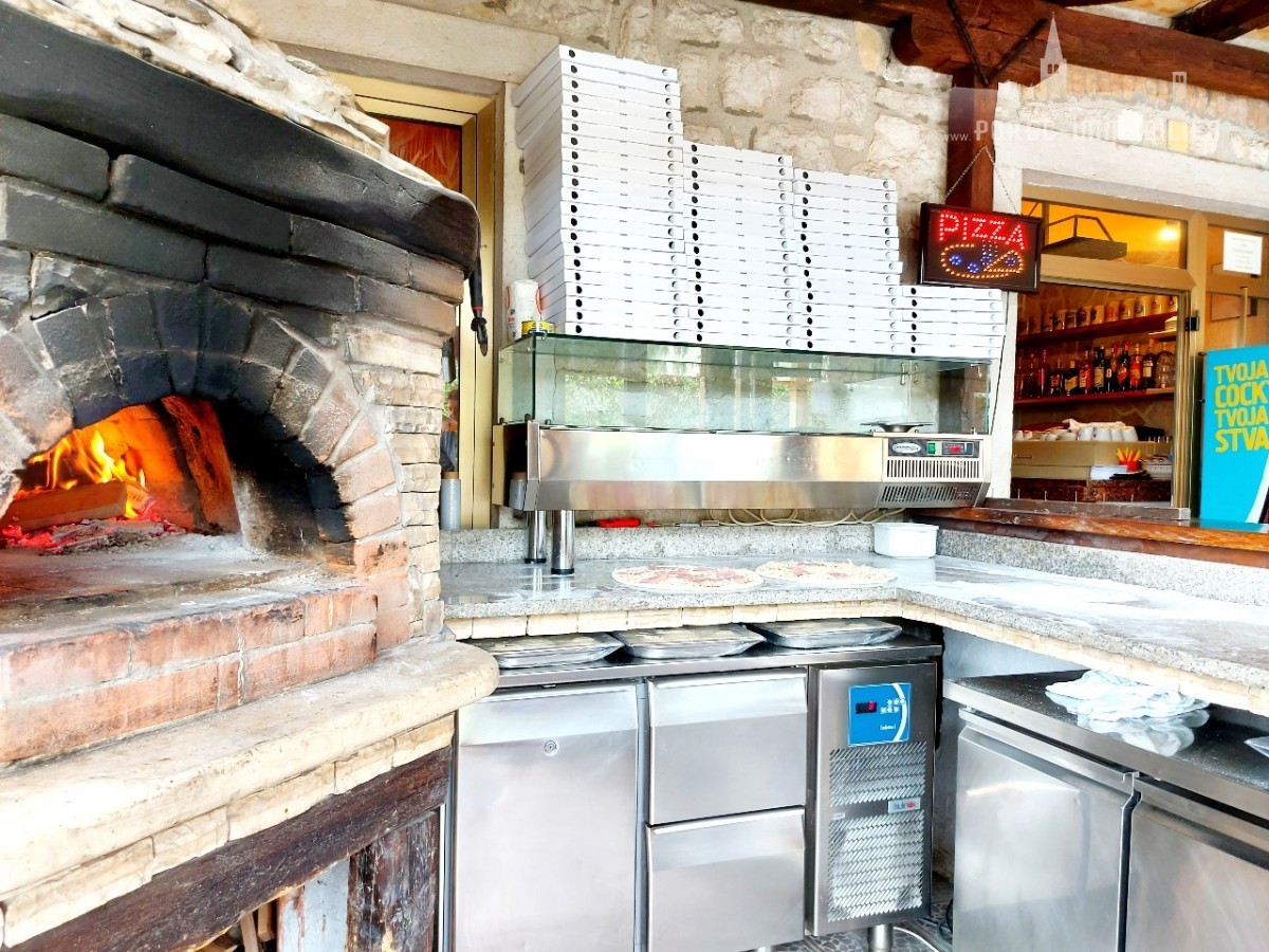 The restaurant consists of a brand new kitchen, a special part for preparing pizza with a bread oven, two halls, a large terrace, men's and women's toilets, and storage.