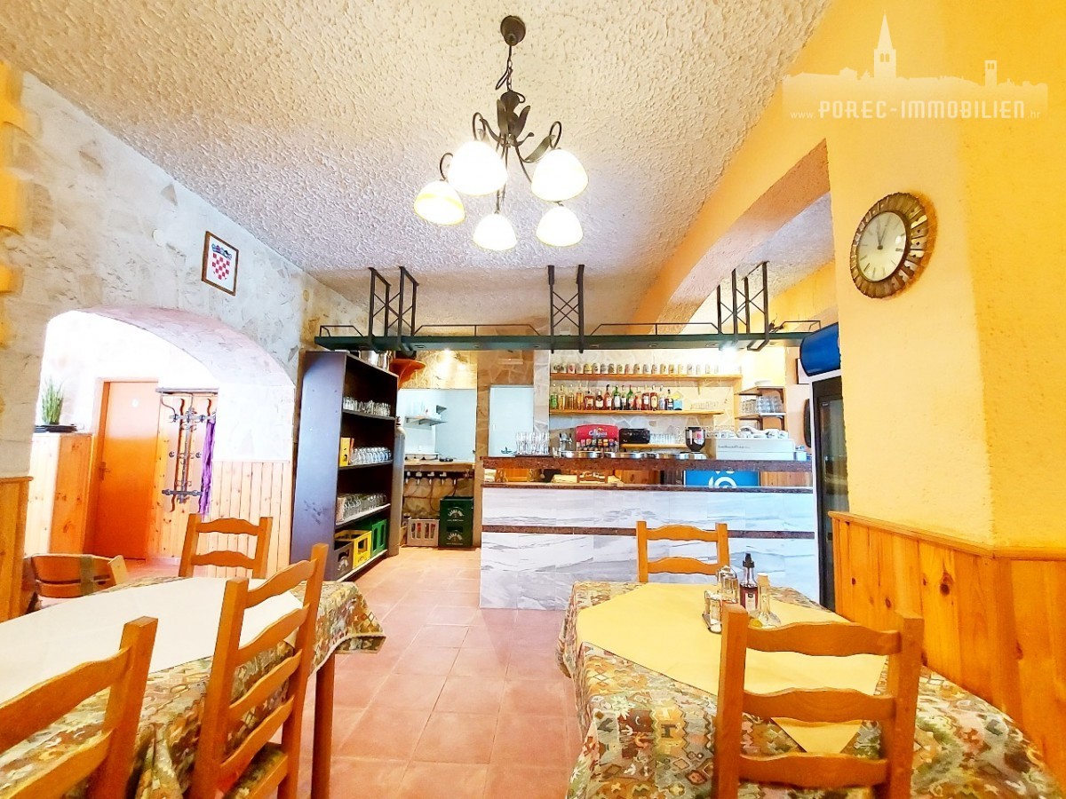 In a beautiful tourist place not far from Porec, for sale is a house with a well-established restaurant on the ground floor of 235 m2, and two separate apartments on the first floor.