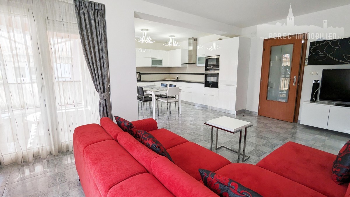 This spacious 119 m² apartment is located on the first floor of a building, just 300 meters from the sea and the center of Porec.