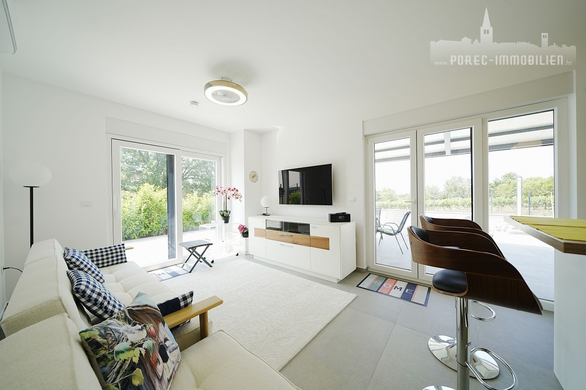 Iz dnevnog boravka izlazi se na natkrivenu, zapadno orijentiranu terasu – idealnu za uživanje u popodnevnom suncu.