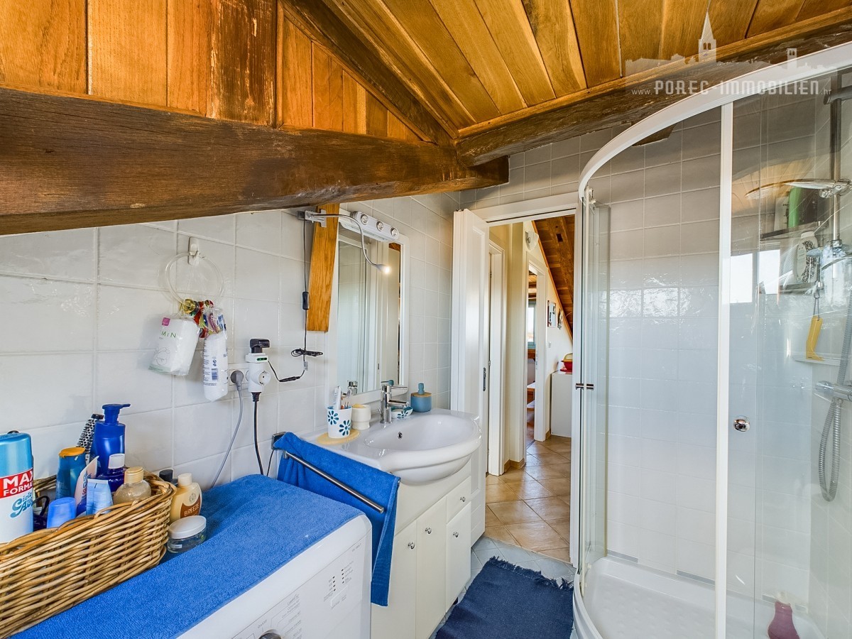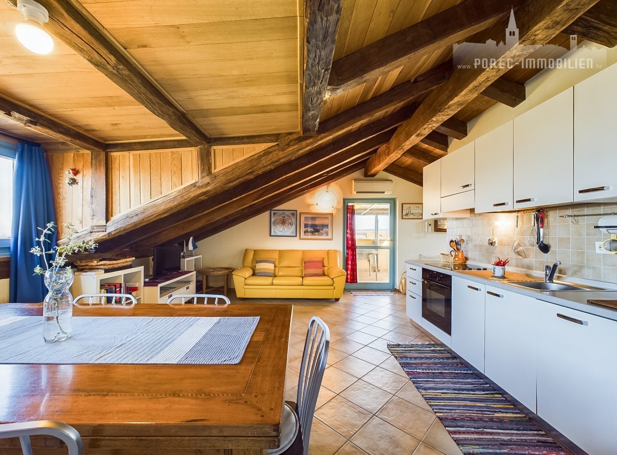 Poreč, stan u potkrovlju sa velikom terasom i dvije spavaće sobe. Bazen i tenis teren na korištenje