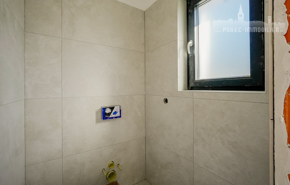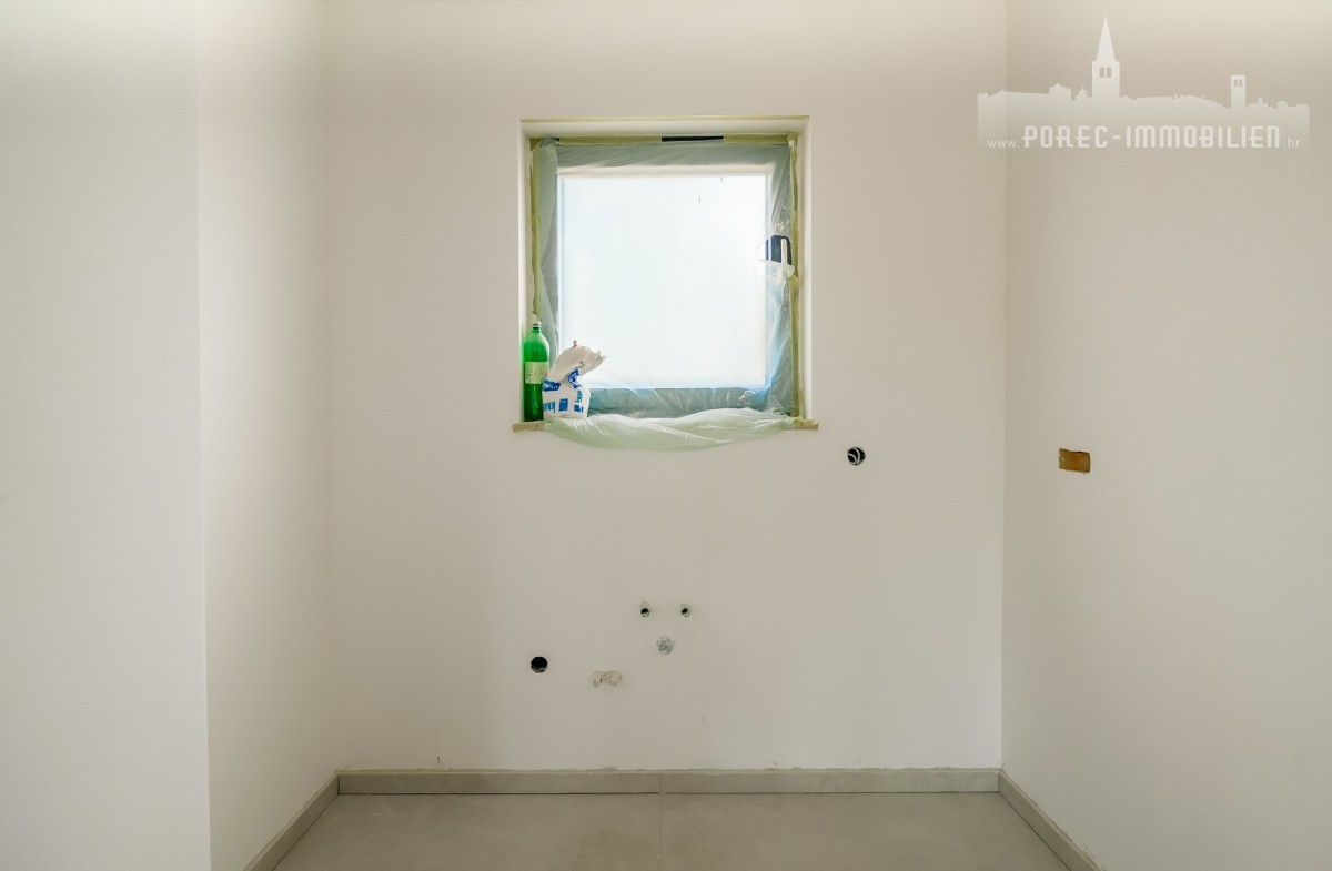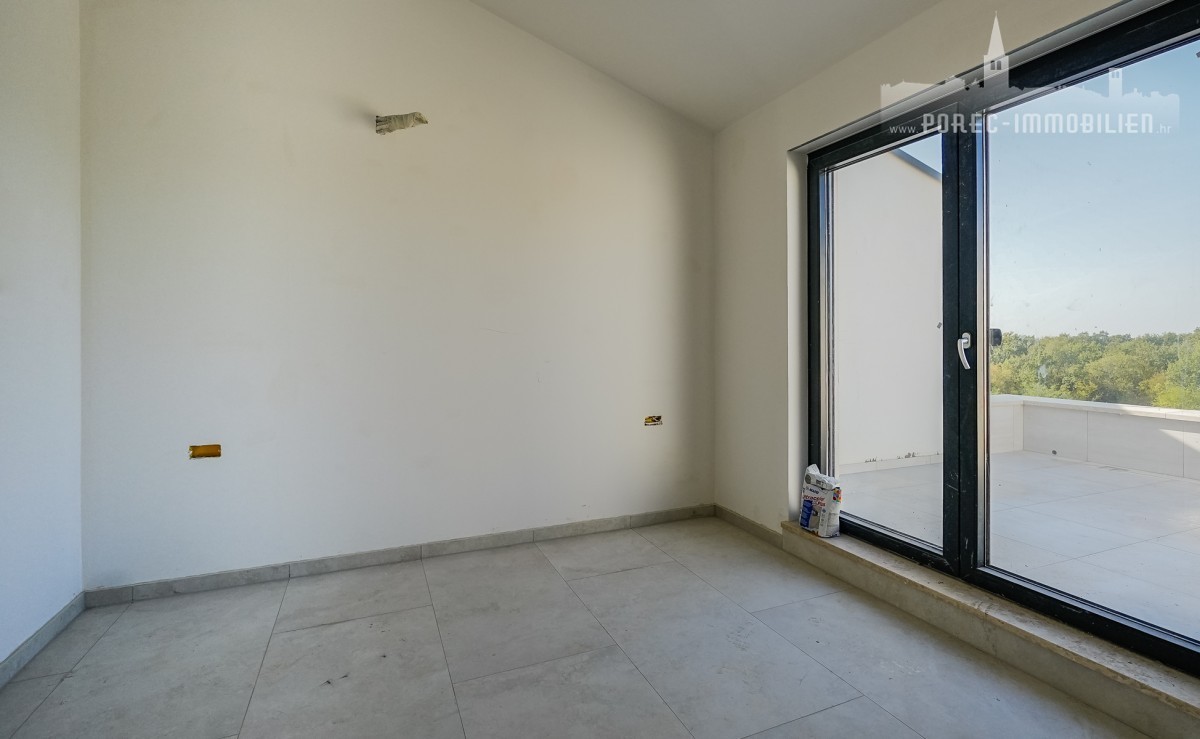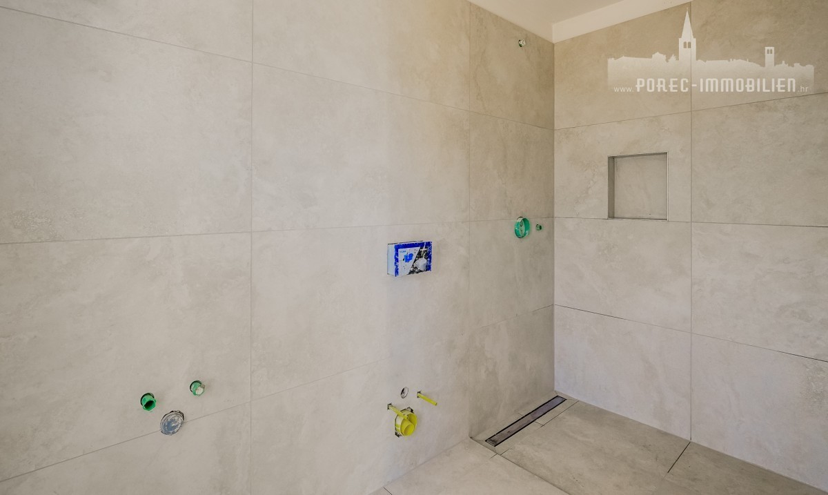 Vendesi un moderno appartamento di 155,24 m2 distribuito su tre piani, situato a soli 2 km dal centro della città di Parenzo.