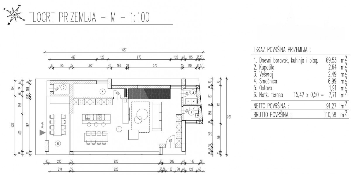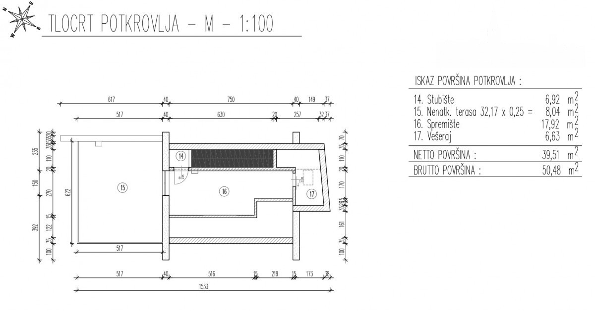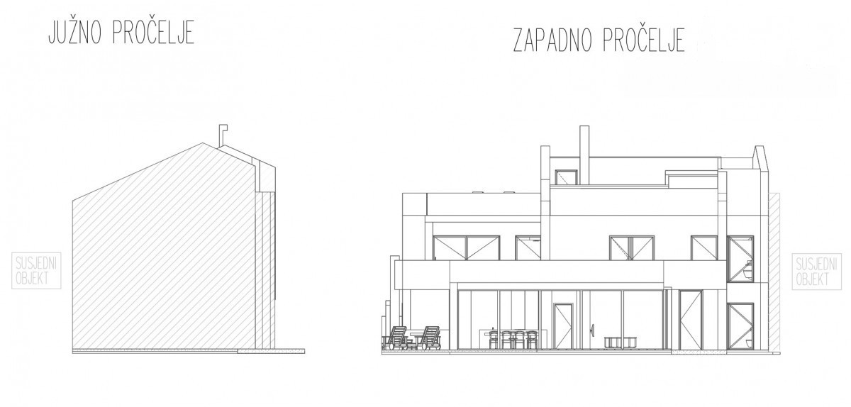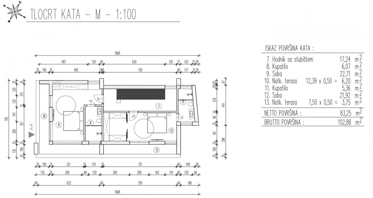 La scala interna porterà al primo piano, dove ci saranno due camere da letto, ciascuna con il proprio bagno e l'ampio terrazzo coperto, mentre nel sottotetto della villa è prevista la camera padronale con il proprio bagno e il terrazzo scoperto con la vista panoramica sul mare e sulla città di Parenzo.