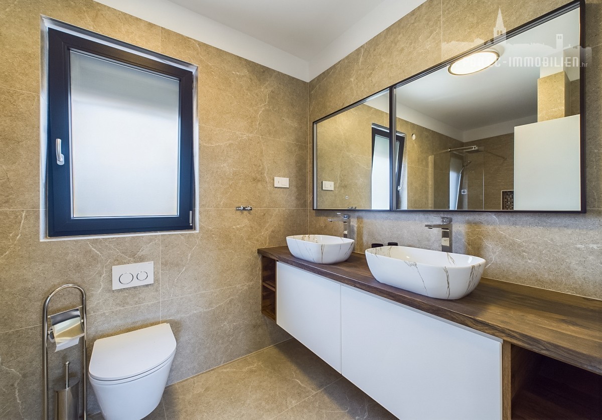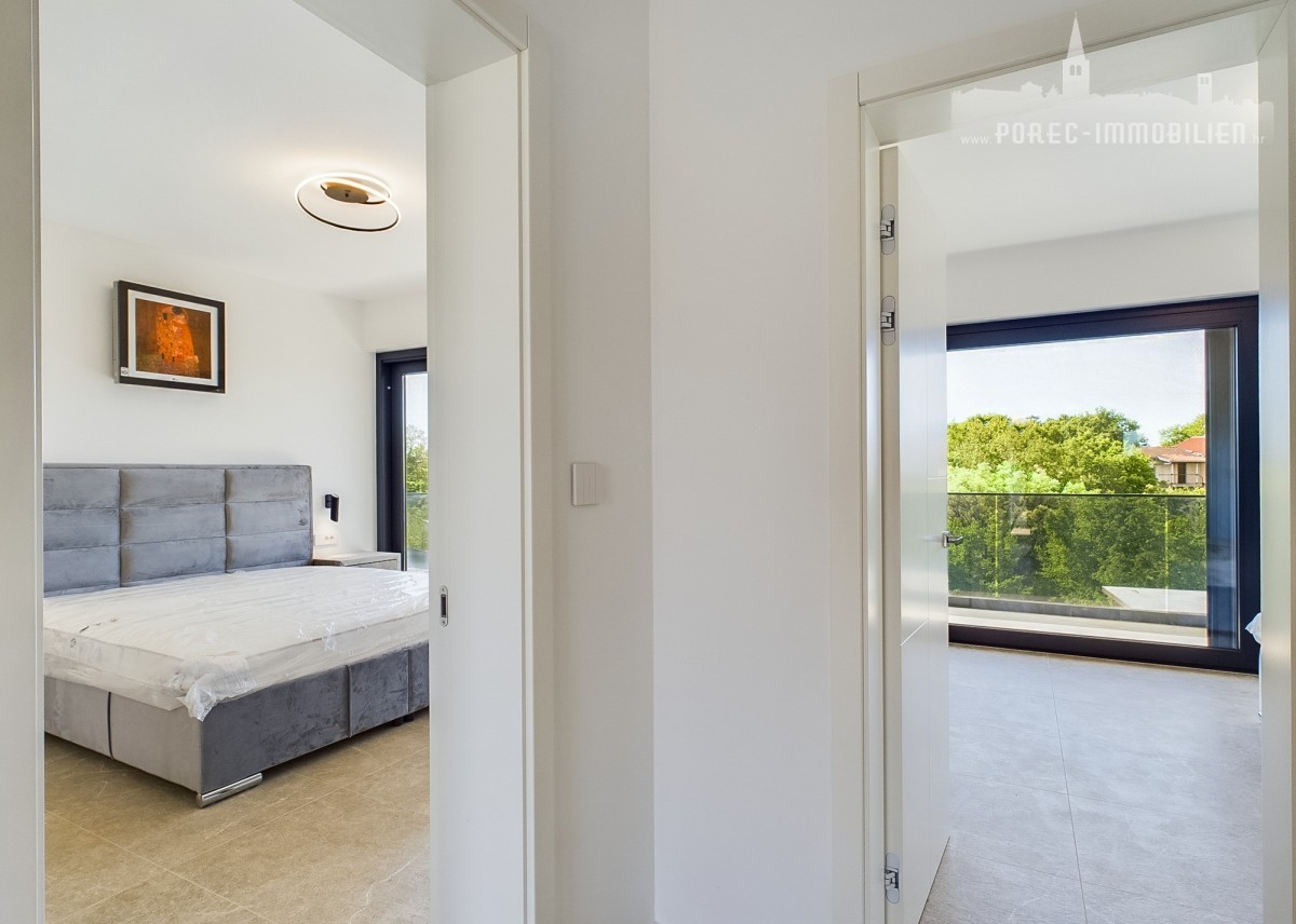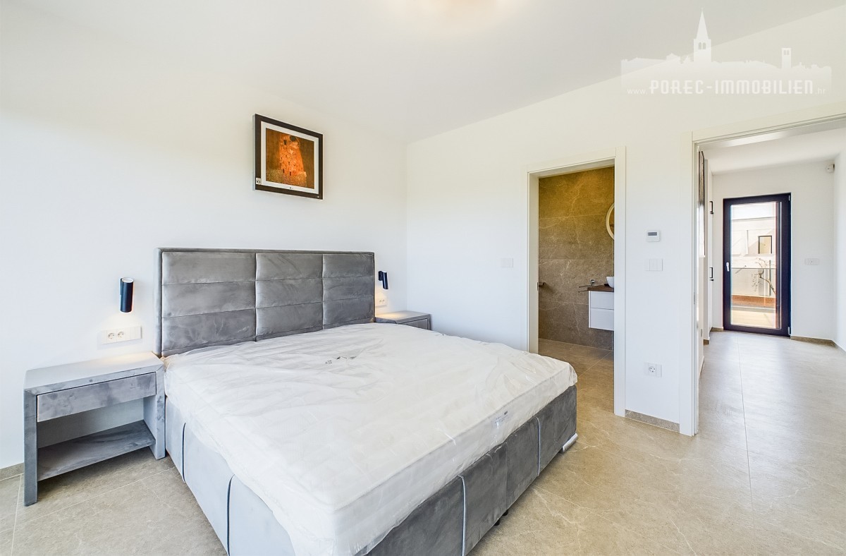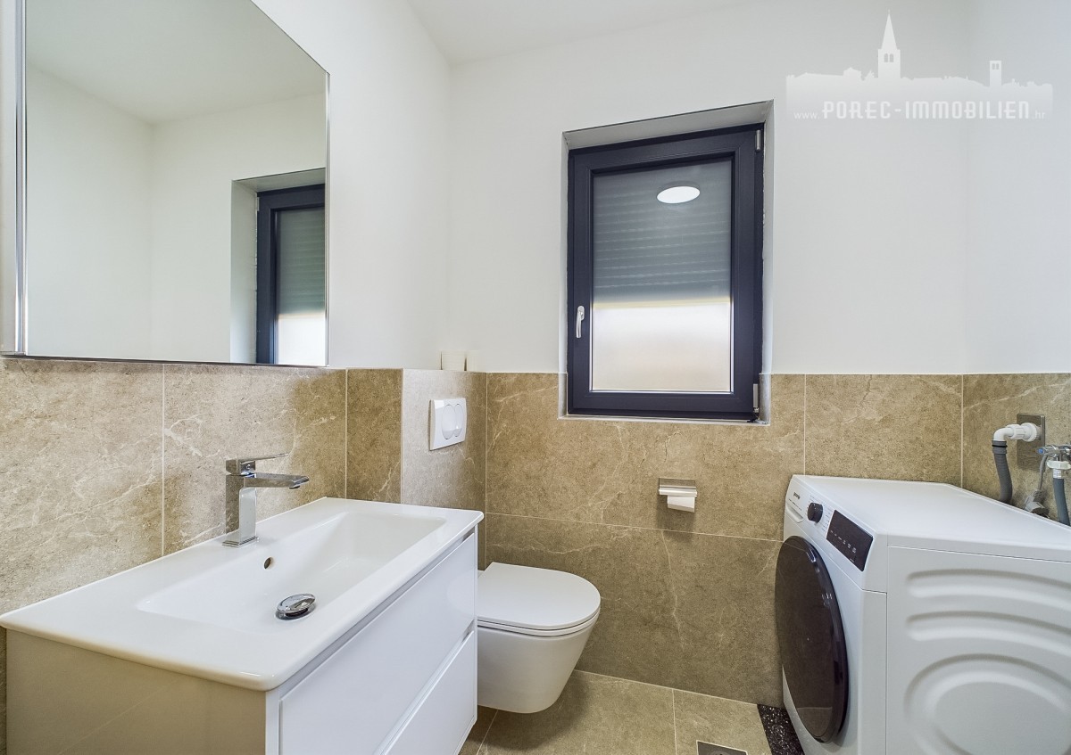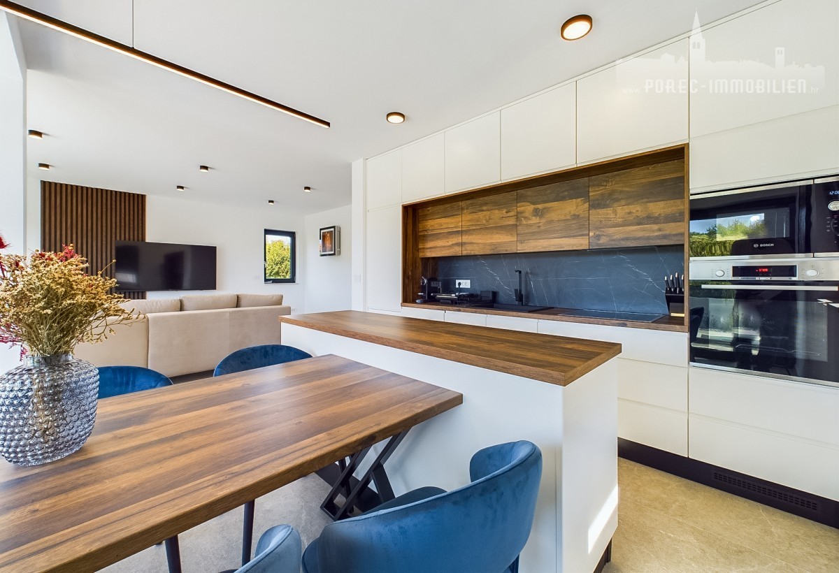 Vendesi la villa moderna situata a Parenzo, a soli 2 km dal mare. La proprietà offre la superficie netta di 217,43 m2 e dispone di una vista mozzafiato sui rigogliosi dintorni. Si compone di seminterrato, piano terra e primo piano e si trova su un terreno di 707 mq.